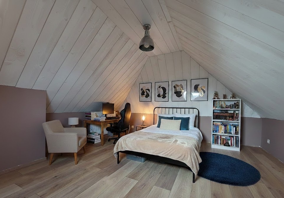 À l'étage, les chambres et une salle-de-bain vous offrent un espace nuit chaleureux et confortable.